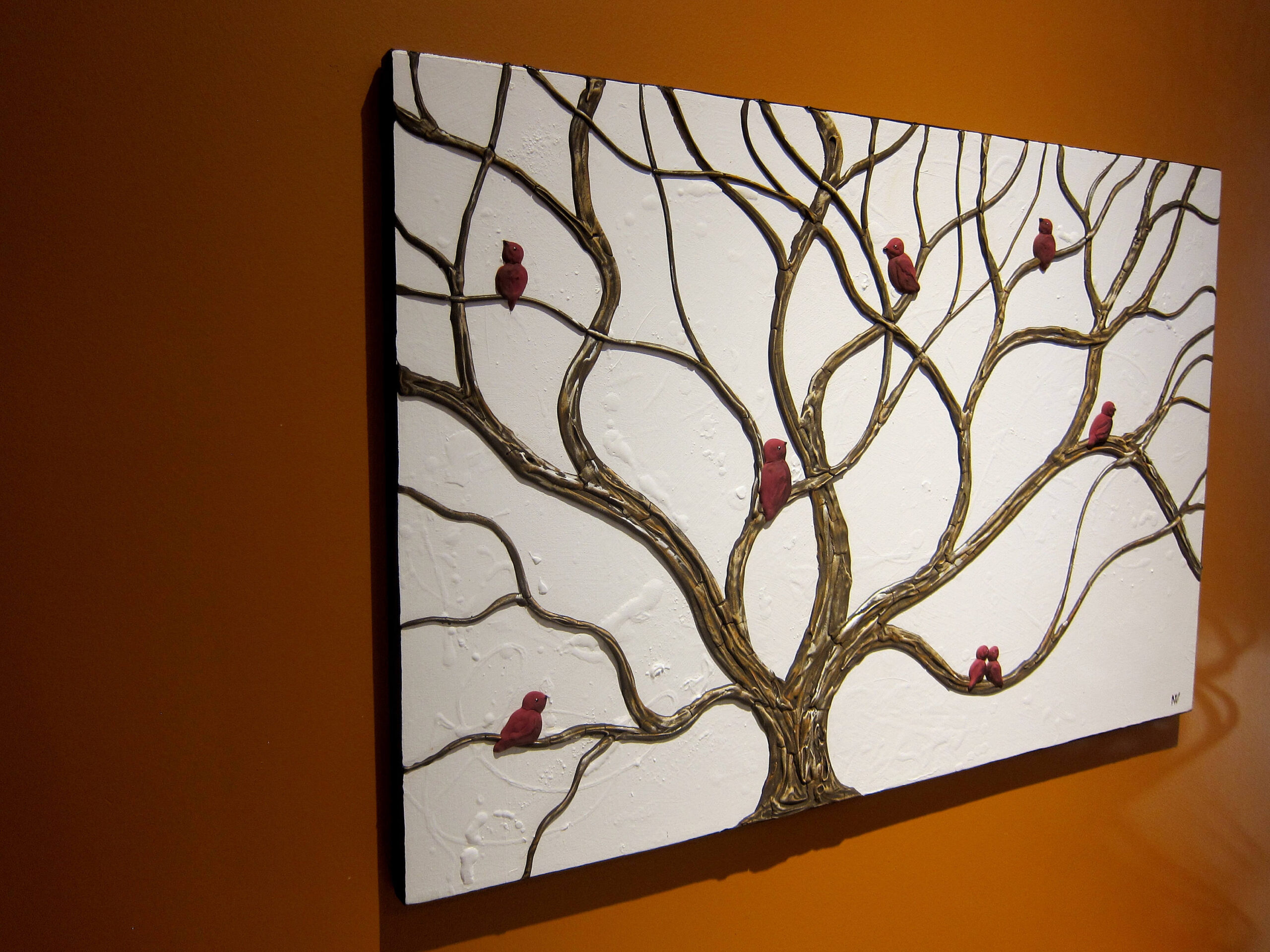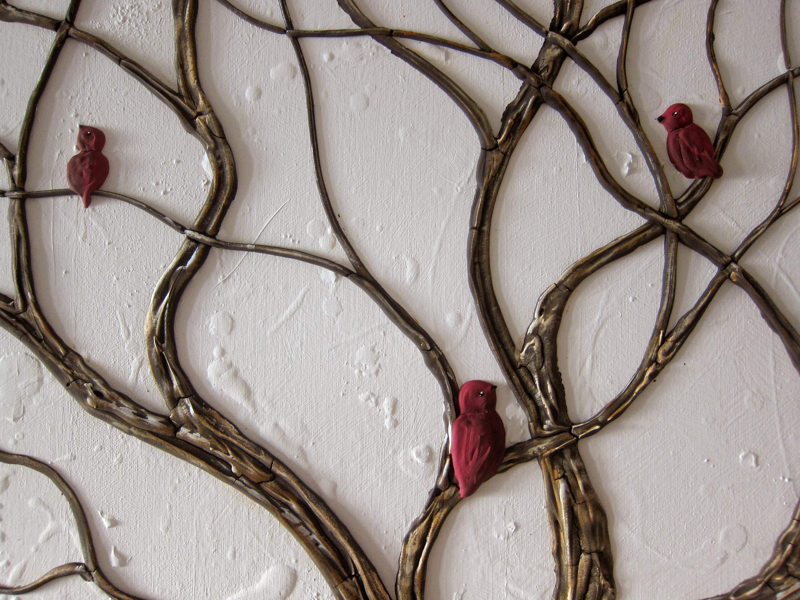Tree Full of Birds Painting Very textured Branches Sculpted Wall Art Original Home Decor Unique Oneofakind by Nathalie Van 30×20