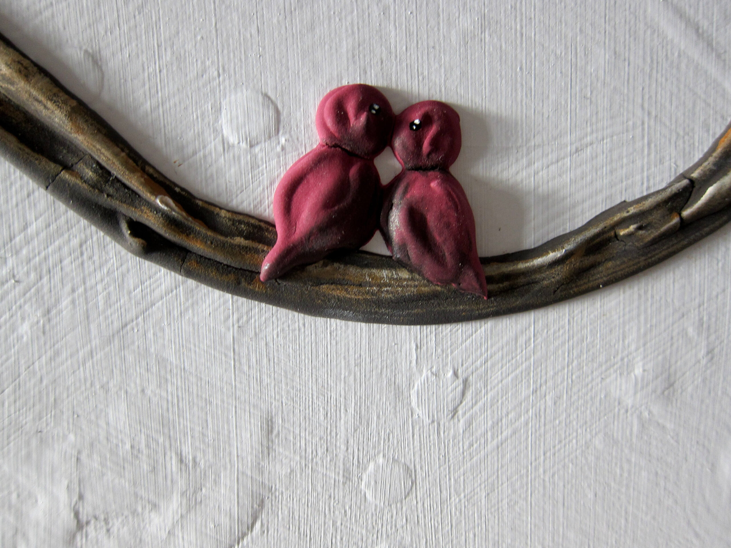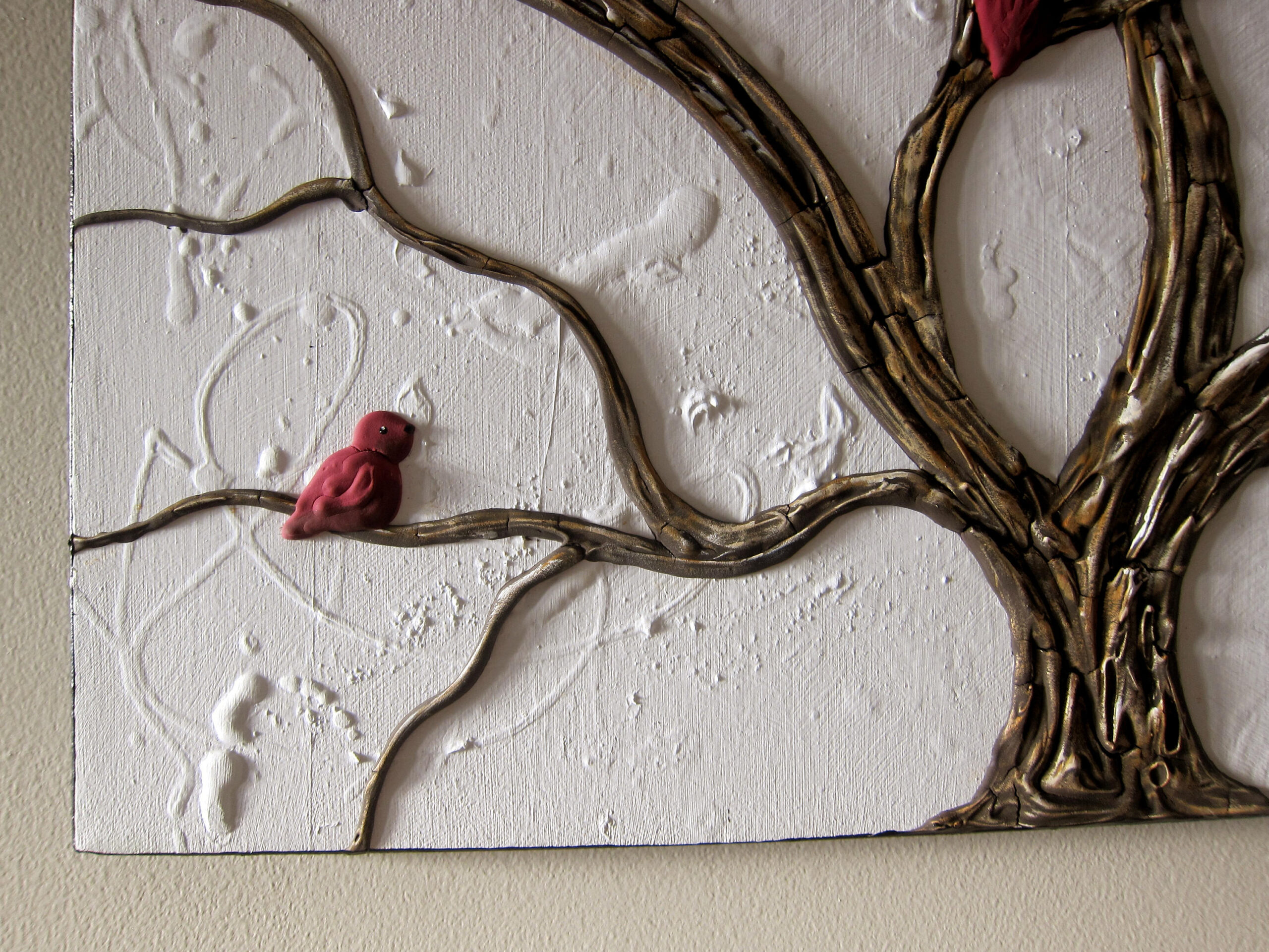 Love Bird Painting Tree Art Impasto textured Branches Sculpted Wall Art Original Home Decor Unique Oneofakind by Nathalie Van 30×24